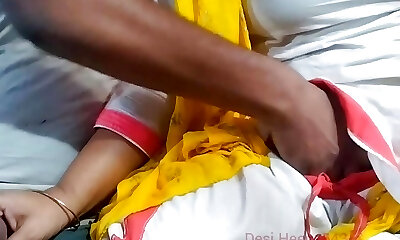 Indian Desi Bhabhi Wearing Yellow Saree In Front Of Devar