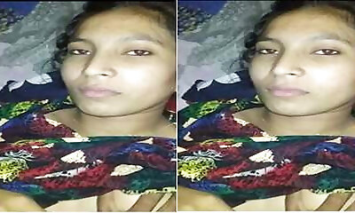 Hot desi girl massaged her breasts and pressed her melons and sucked the nipples in her mouth.