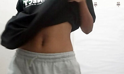My tiny stepsister surprises me masturbating in her underpants in her room.